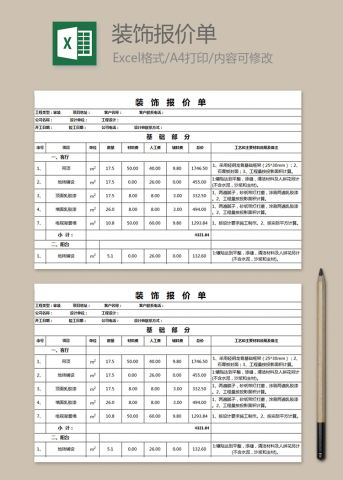 W大师提供个性化工程报价清单模板下载,模板编号为10040108,大小为50KB, 作品在2020-04-03上传到W大师,作品高清大图模板,格式为xls, 属于仓储购销高清模板,作品模板源文件下载后可用编辑替换,模板中如有人物画像仅供参考禁止商用。