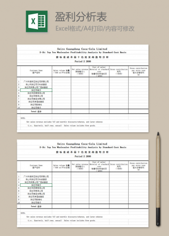 紫色利润分析表